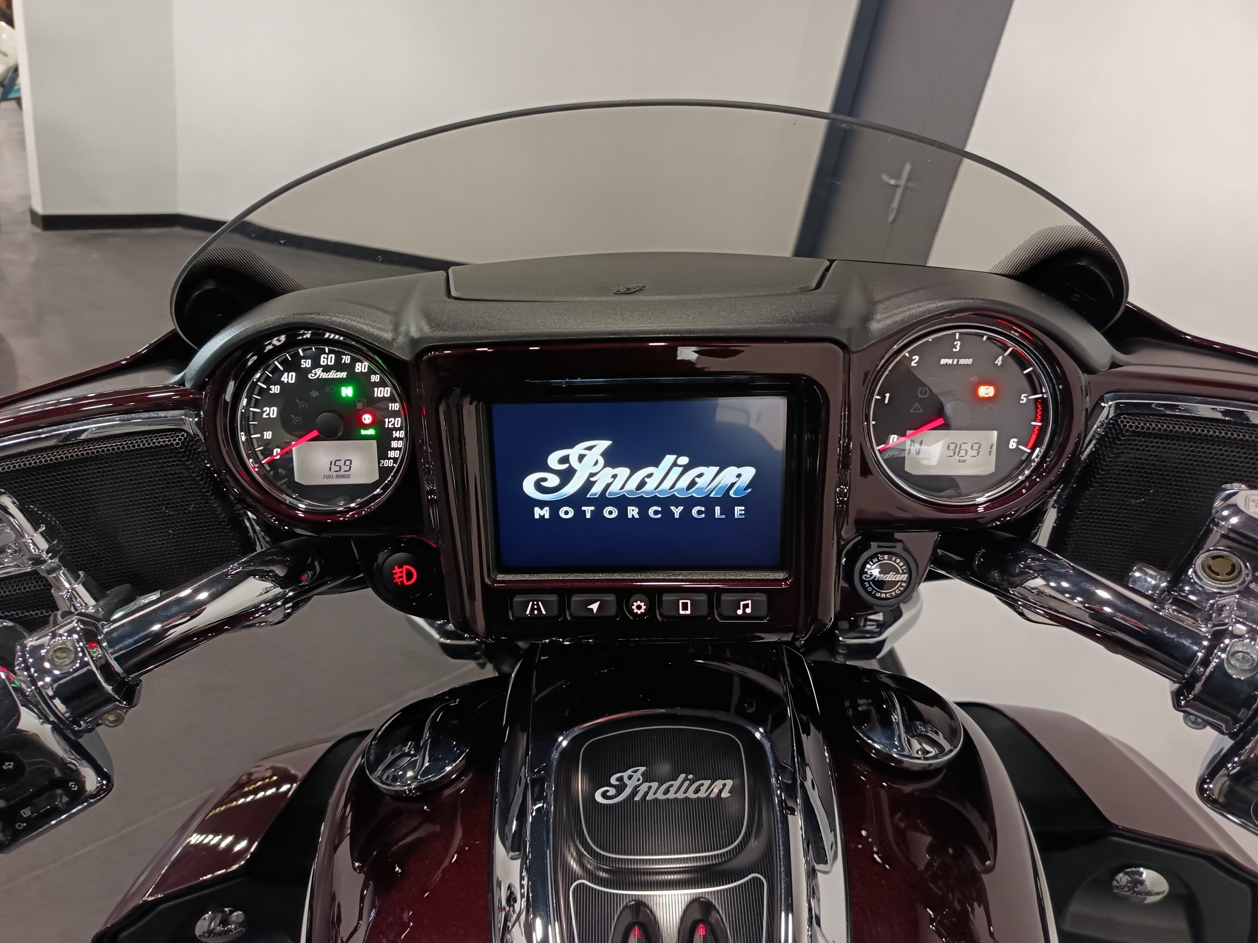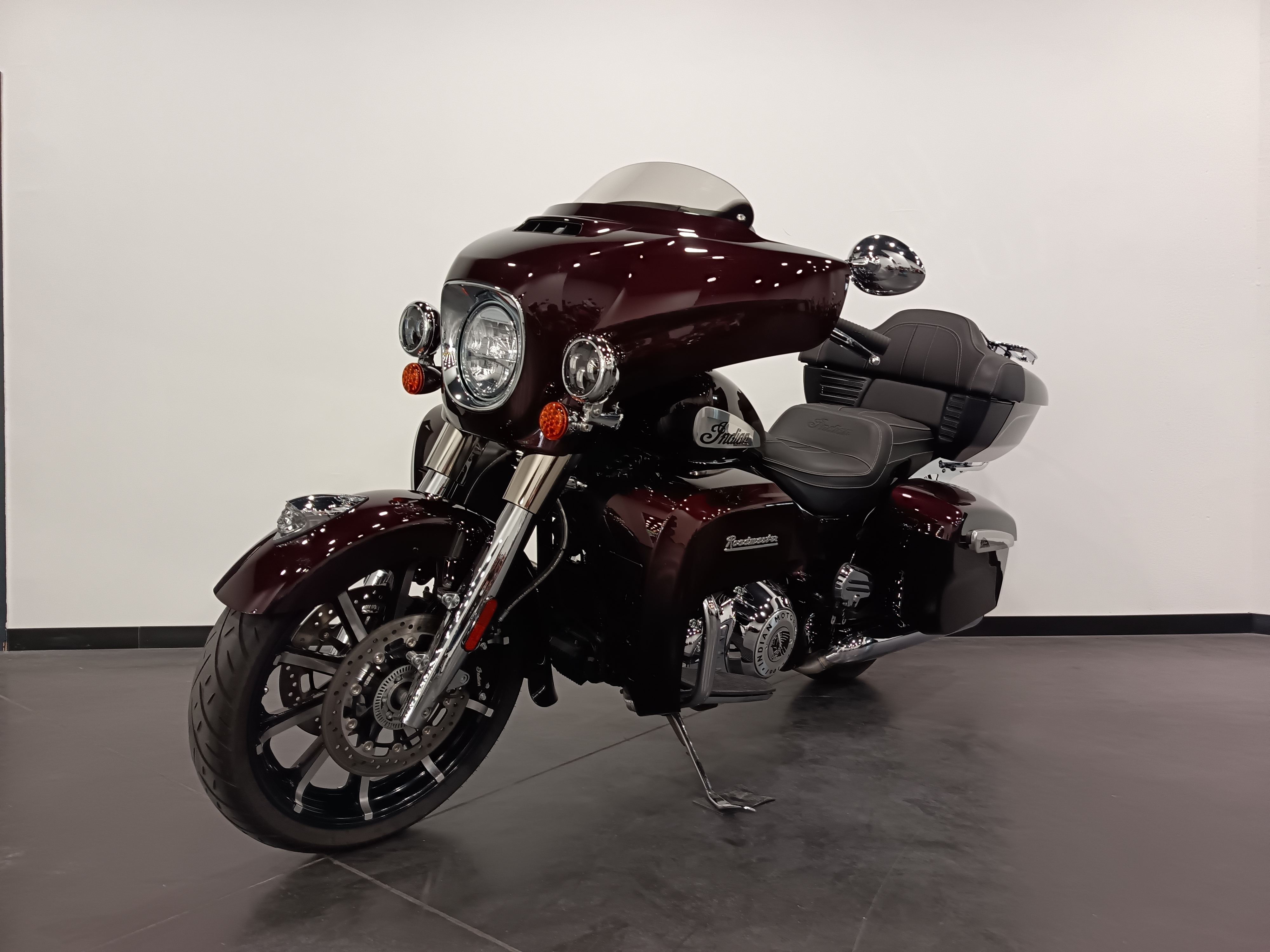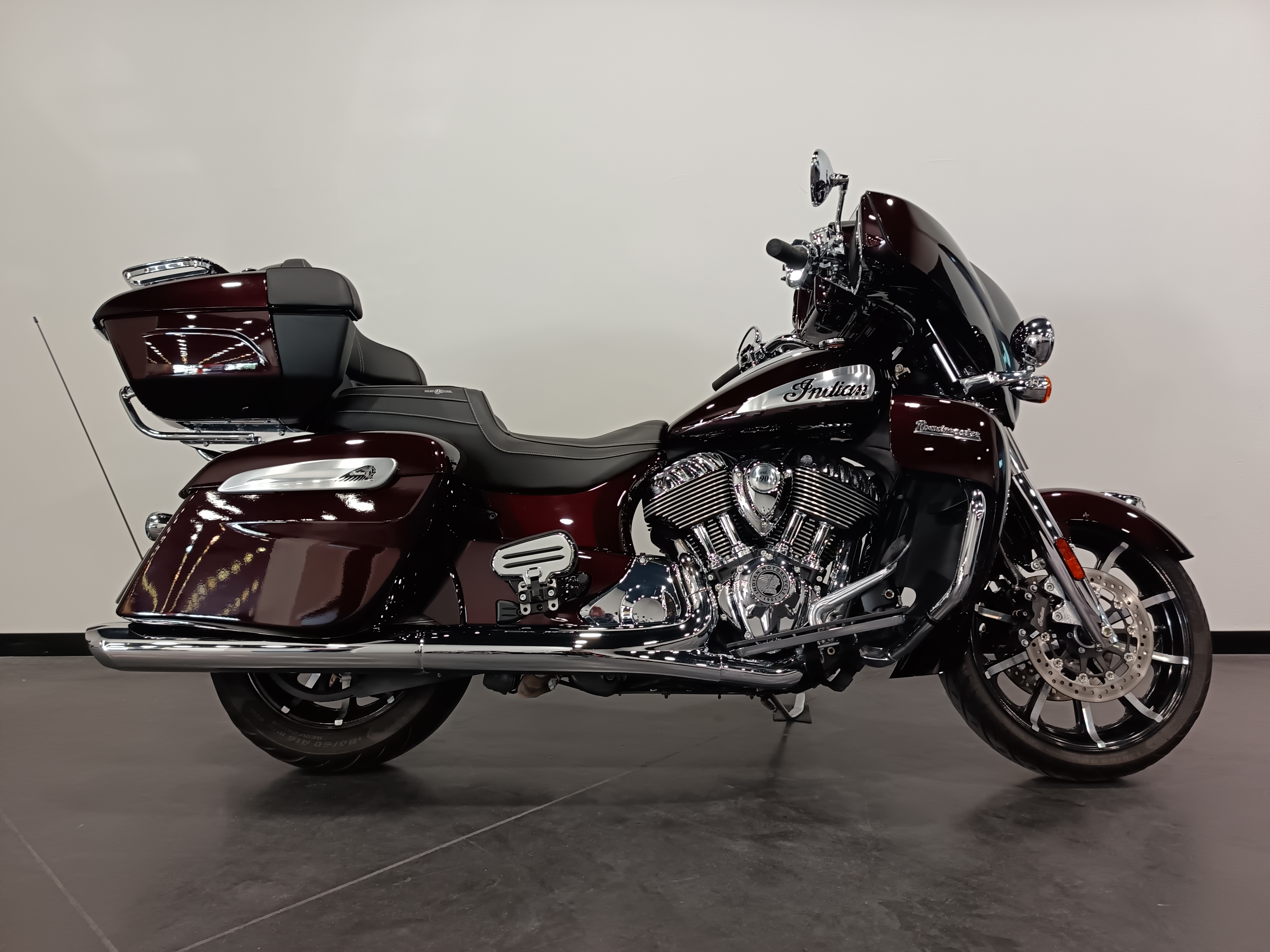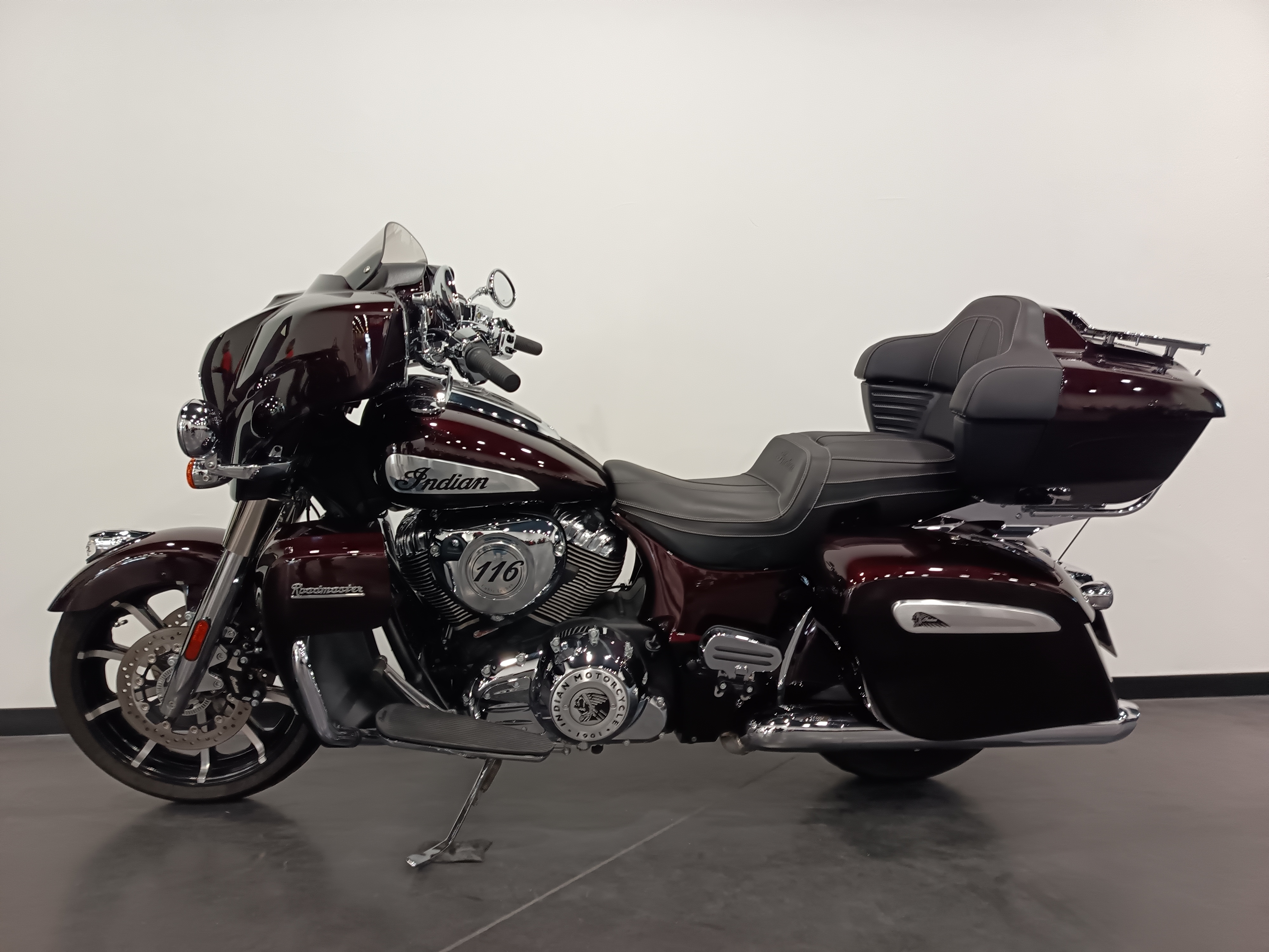 Une Indian Roadmaster 1890 de premiere main, couleur crimson metallic totalisant 9691 km.